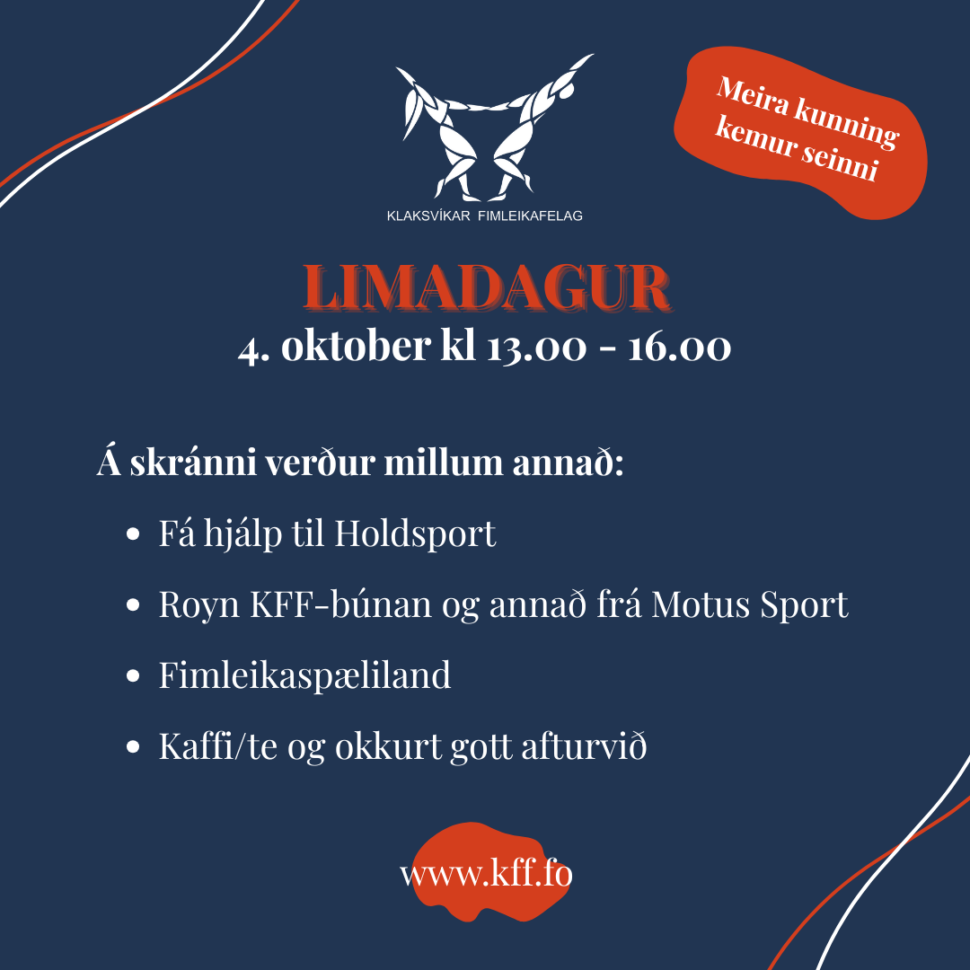 Vit fara at hava limadag 4. oktober kl 13-16 í fimleikahallunum.